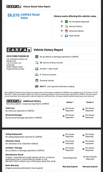 2010 FORD FUSION LOW MILES/WELL MAINTANIED/ EXTEMLY CLEAN INTERIOR AND EXTERIOR/CLEAN TITLE/ NO ACCIDENT/ DRIVES GREAT/ BLUETOOTH/ PASSED NEW INSPECTION AND EMISSION.